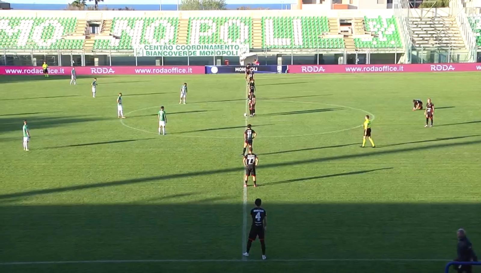 Poche le occasioni create dal Messina che cerca più a difendersi che attaccare a differenza del Monopoli che nonostante ha la meglio non riesce a concretizzare diverse palle goal.