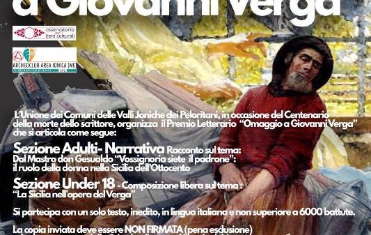 Cultura L’Unione dei Comuni delle Valli Joniche dei Peloritani organizza il premio letterario “Omaggio a Giovanni Verga” Destinatari adulti e studenti. Iscrizioni fino al 9 dicembre Redazione27 Novembre 2022
