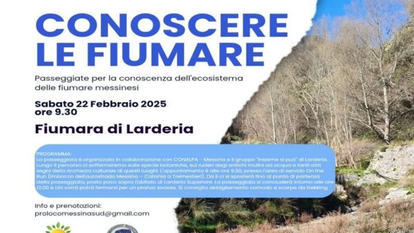 Attualità Programma di attività “Conoscere Le Fiumare” della Pro Loco Messina Sud La prima passeggiata sarà lungo la fiumara di Larderia Redazione11 Febbraio 2025