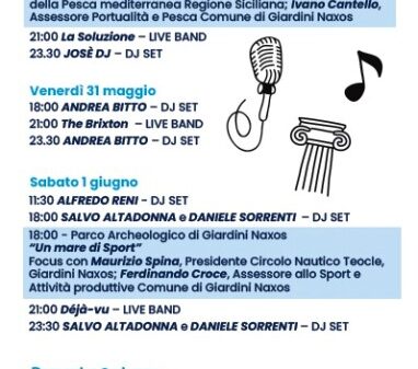 Attualità ‘Naxos Street Fish’da giovedì 30 maggio a domenica 2 giugno a Giardini L’assessore comunale alla Portualità e Pesca, Ivano Cantello ha annunciato che è imminente l’iscrizione di Giardini Naxos al Reimar Redazione25 Maggio 2024