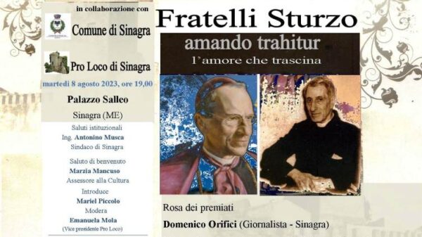Cultura L’8 agosto a Sinagra, il XII premio Fratelli Sturzo, l’amore che trascina Quest’anno nella rosa dei premiati, vi sono tre persone impegnate nel sociale per il bene comune Redazione5 Agosto 2023