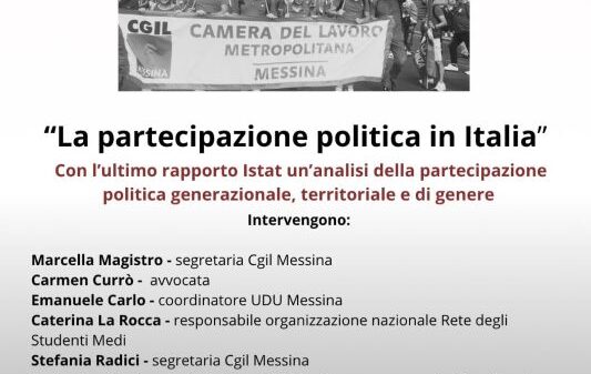 Cultura “La partecipazione politica in Italia”, mercoledì 8 ottobre incontro pubblico Presso la sala ovale del Comune di Messina, promosso dalla Cgil di Messina Redazione7 Ottobre 2025