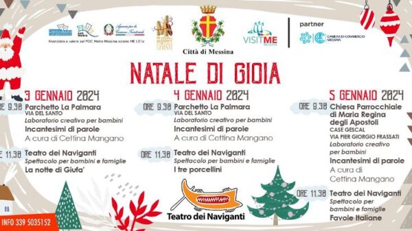 Cultura Il 3, 4 e 5 gennaio,il Natale di gioia del Teatro dei Naviganti per Il Comune di Messina Il tutto libero e gratuito Redazione27 Dicembre 2023