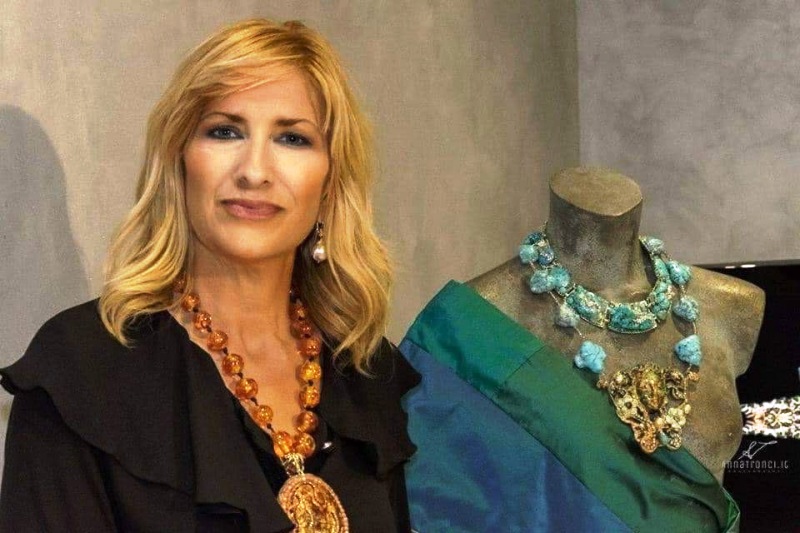 Marina Corazziari ( foto) è una stilista di gioielli particolarissimi conosciuta a livello internazionale, scenografa e curatrice di mostre ed eventi prestigiosi è figlia d’arte, proviene da una famiglia di architetti. Docente esperta per “Storia del gioiello” in diversi licei e istituti superiori di moda, consegue la laurea in Scenografia e Storia dell’Arte c/o l’Accademia di Belle Arti di Bari, una specializzazione presso la Uno A Erre ad Arezzo e subito dopo un Master in Alta Decorazione Applicata agli Abiti a Firenze alla Fondazione Roberto Cappucci. Lavora tra Roma, Bari, Milano e Montecarlo conta più di duecento mostre, quasi tutte personali, in Italia e all’estero in location di altissimo livello. Durante le varie edizioni di AltaRoma crea intere collezioni di gioielli dallo stile eclettico per l’icona indiscussa dell’Haute Couture Raffaella Curiel, per Vittorio Camaiani, per Flavio Filippi e tanti altri. Riceve negli anni numerosi premi e riconoscimenti e recensioni e pubblicazioni sulle più importanti testate giornalistiche nazionali ed internazionali.